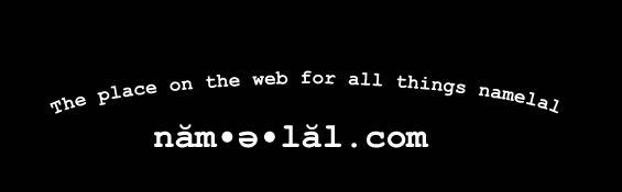 Welcome to namelal.com. This is my personal space on the web, and if you don't know me, that's cool. Feel free to have a look at the photos and my blog as well as information about our wedding in July of 2005. If you were invited here to look at my portfolio, please click the link above and enter the password that was sent to you. Have fun looking around, and if you have any questions, feel free to email me. ~The namelal master |
